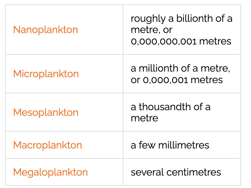Planktonic organisms can be classified :