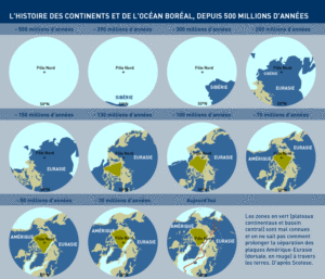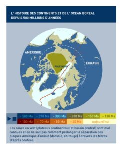 A map of the sea bed shows that the mid-Atlantic Ridge separating the American and Eurasian plates extends right up into the Arctic Ocean. But very little is known about the history of the Earth’s crust in that region because conditions in the Arctic make geological and geophysical studies very hard to carry out.