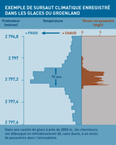 The continental ice caps were formed by the accumulation and settlement of snow over the years. The ice thus formed contains air bubbles, but also all kinds of atmospheric dust (aerosols). Once trapped in the ice, this air retains the composition it had when it was trapped. Today, these bubbles, aerosols and “fossil” pollens are precious witnesses of past climates.