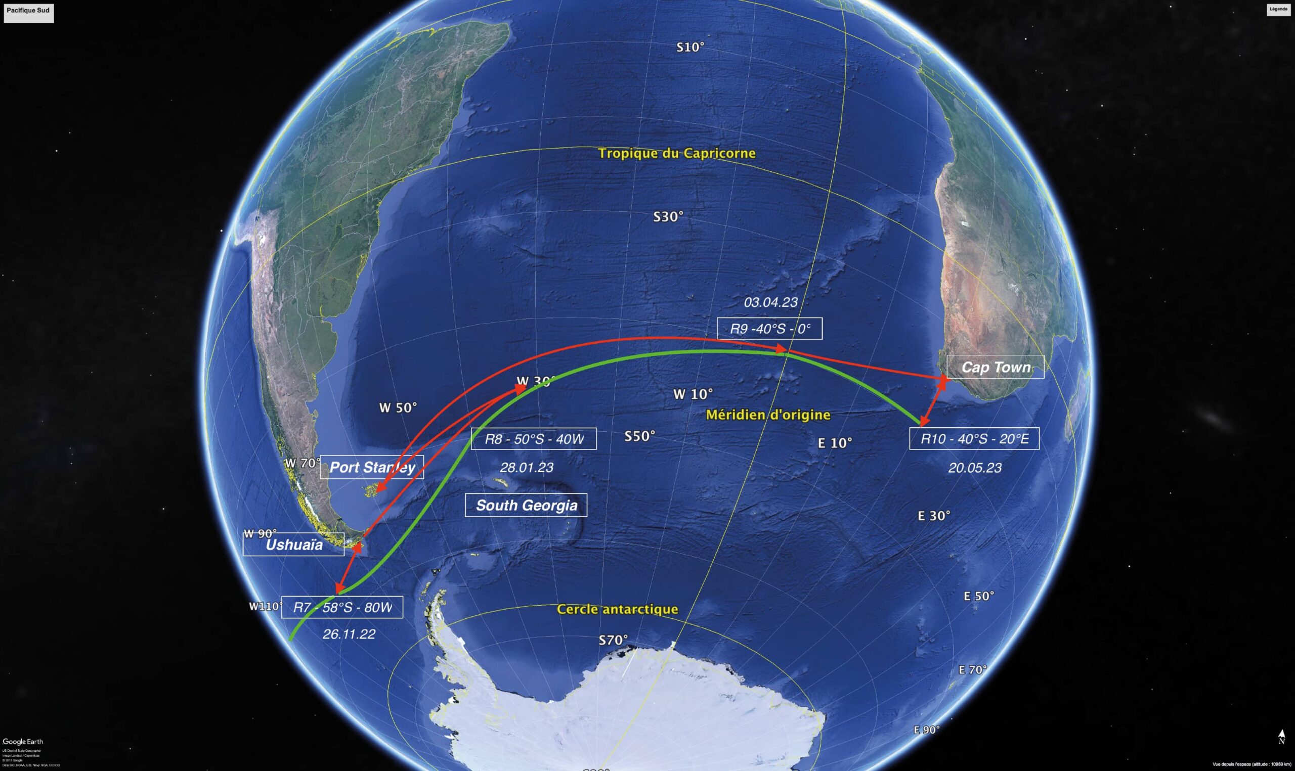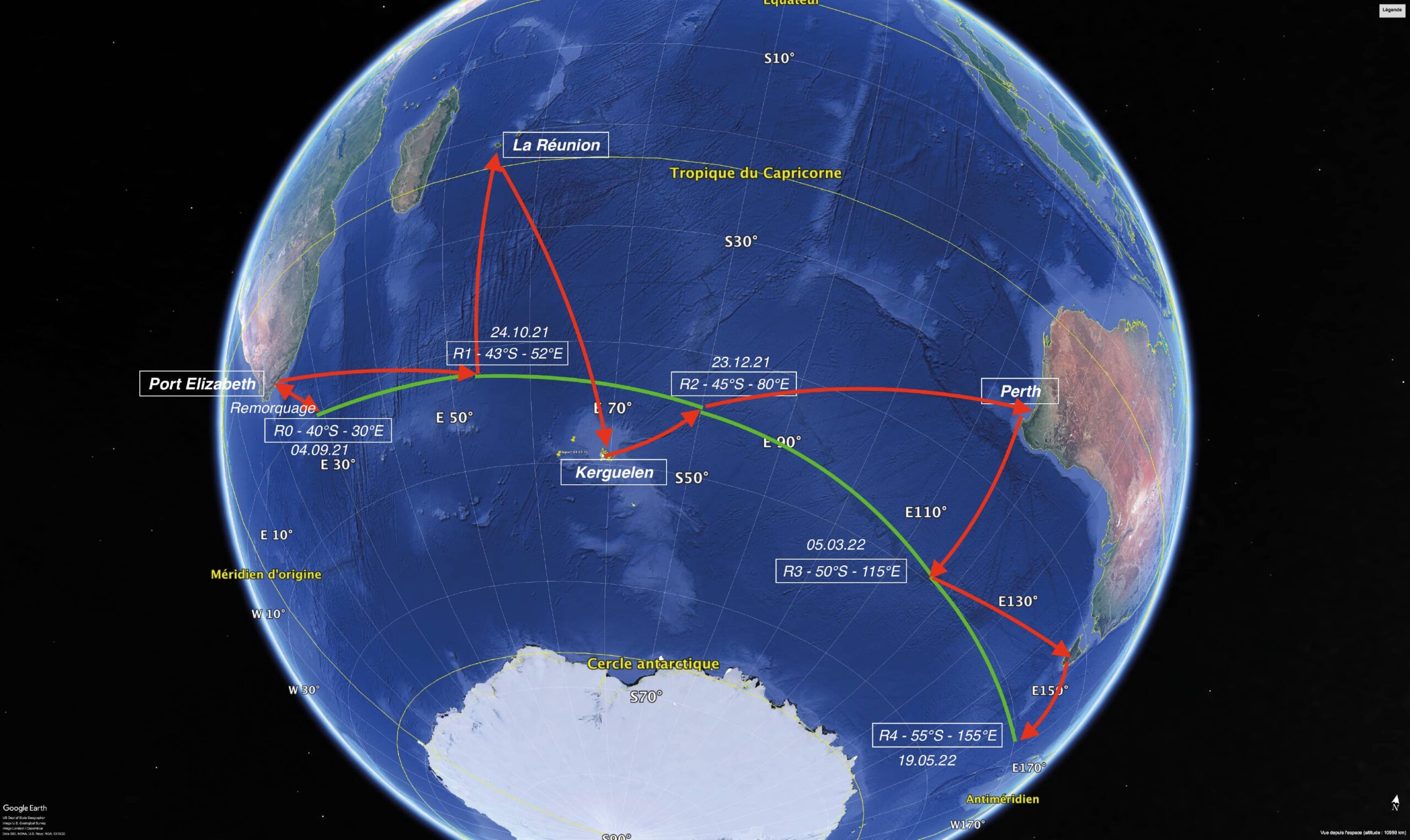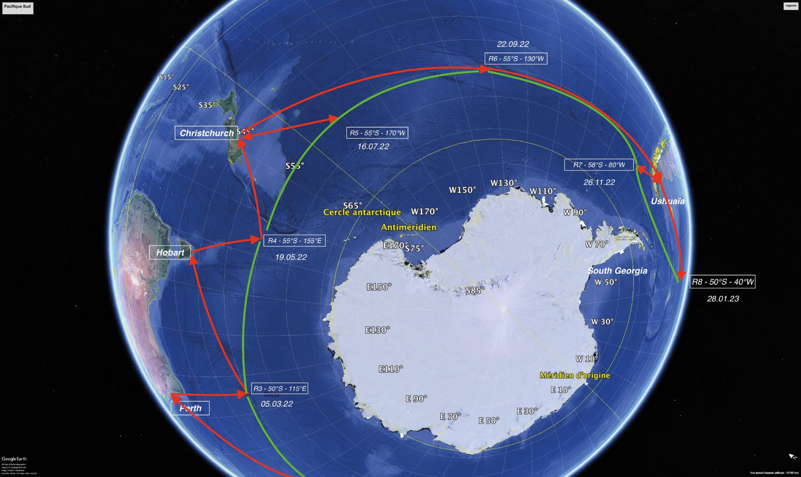 This 24,000 km circumnavigation, at an average speed of 1 knot (1.8 km/h), is expected to last 2 years. Subject to headwinds and unfavorable currents, the POLAR POD will not follow a straight trajectory.