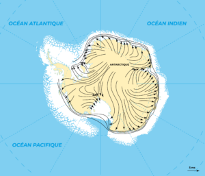 La force et la direction des vents en Antarctique.