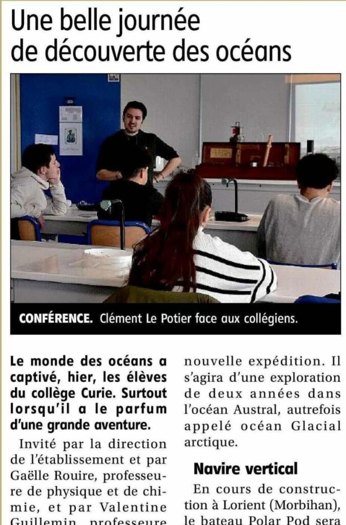 À terre, le PolarPODibus, un minibus dédié à l’expédition et aménagé avec des supports de médiation scientifique, sillonnera la France pour venir à la rencontre des écoles, des collèges et lycées, et des lieux de culture scientifique technique et industrielle.